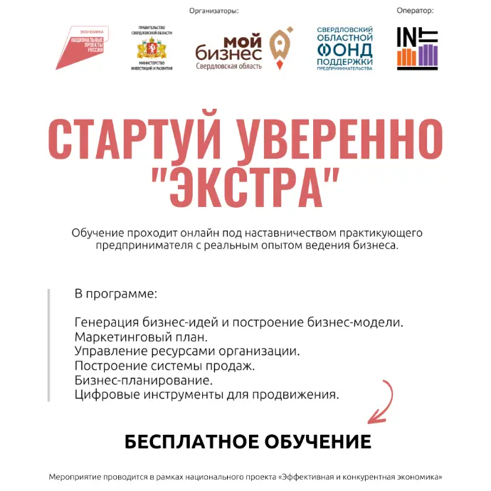 Обучение по данным курсам для граждан и предпринимателей Свердловской области бесплатное!