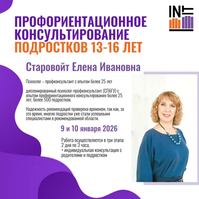 дипломированный психолог-профконсультант (СПбГУ) с опытом профориентационного консультирования более 25 лет, более 500 подростков.