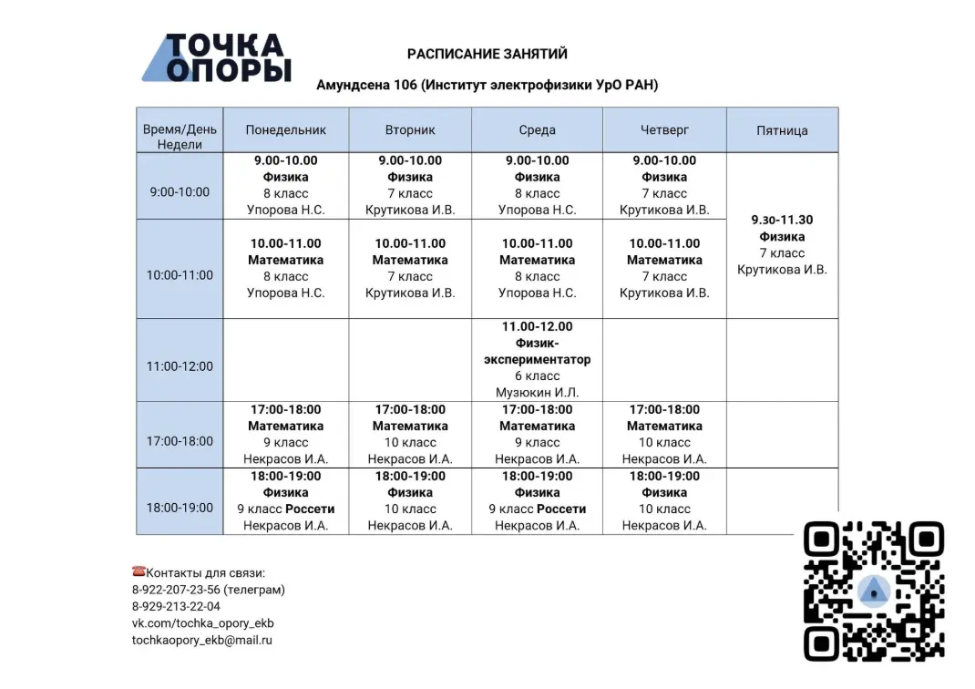 Контакты физико-технологического кружка "Точка опоры"